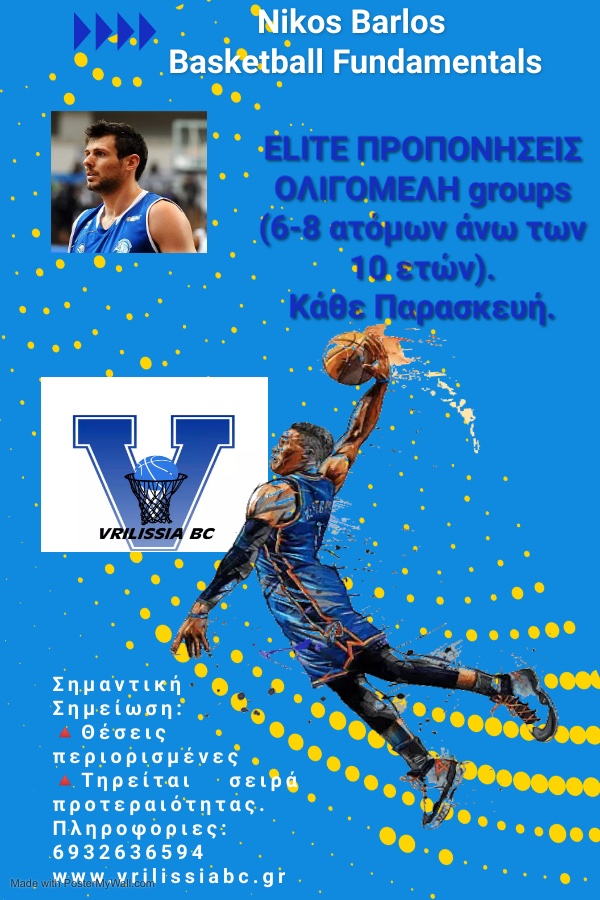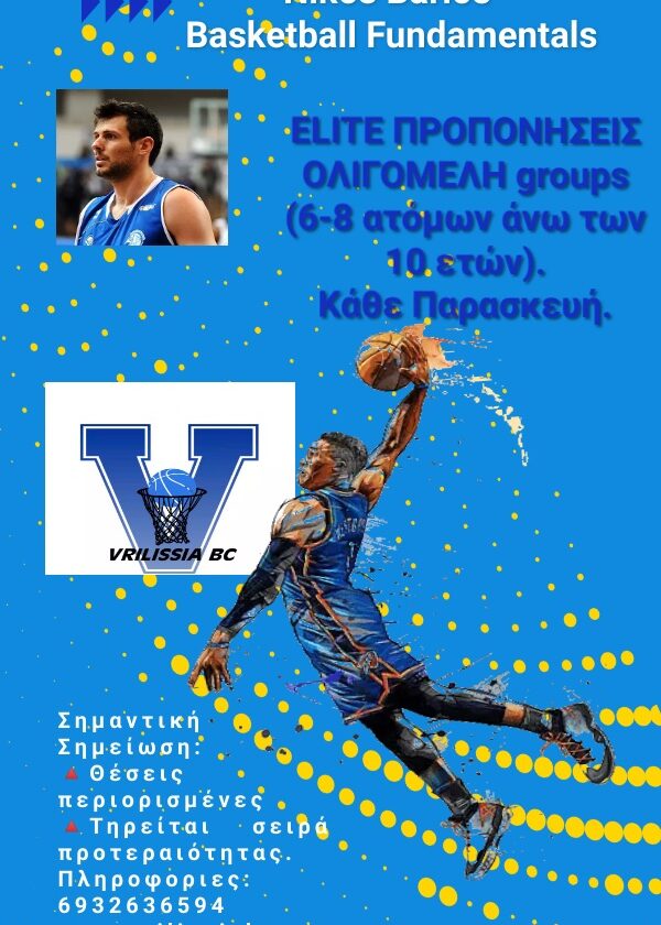Elite Προπονήσεις Nikos Barlos Fundamentals BaskeTball-Ολιγομελή Groups (6–8 αθλητών άνω των 10 ετών)