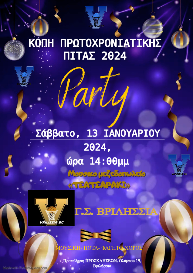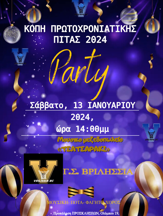 Είμαστε χαρούμενοι να σας προσκαλέσουμε στην πρωτοχρονιάτικη Γιορτή και κοπή της πίτας του Συλλόγου η η οποία θα πραγματοποιηθεί στις 13/01/24 στο μουσικό μεζεδοπωλείο ‘’Τσατσαρακι’’ έπειτα απο την πετυχημένη περσινή μας εκδήλωση.