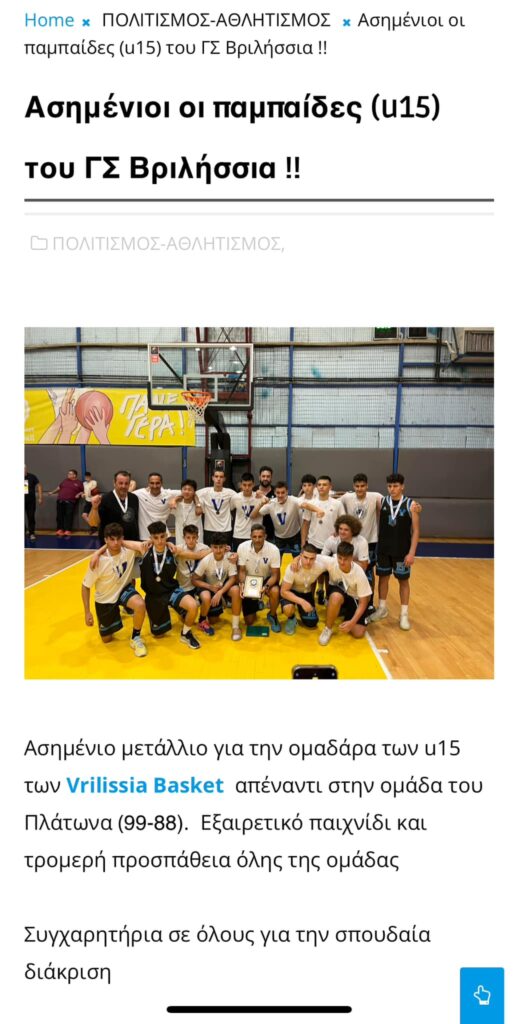 Οι αθλητές της ομάδας της πόλης μας, επιβεβαίωσαν και στον ημιτελικό τις εξαιρετικές τους εμφανίσεις όλη τη σεζόν, ανάλογες με την πορεία τους όλα αυτα τα χρόνια. Άλλωστε τα ίδια παιδιά σήκωσαν πέρυσι το κυπελο του Jr. NBA Greece ευρισκόμενοι διαχρονικά στις 4 καλύτερες ομάδες της Αθήνας.